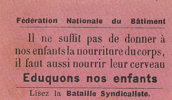 Papillon gommé de "La Bataille Syndicaliste" : Eduquons nos enfants