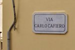 Plaque de la rue Carlo Cafiero à Gragnana, Toscane, Italie